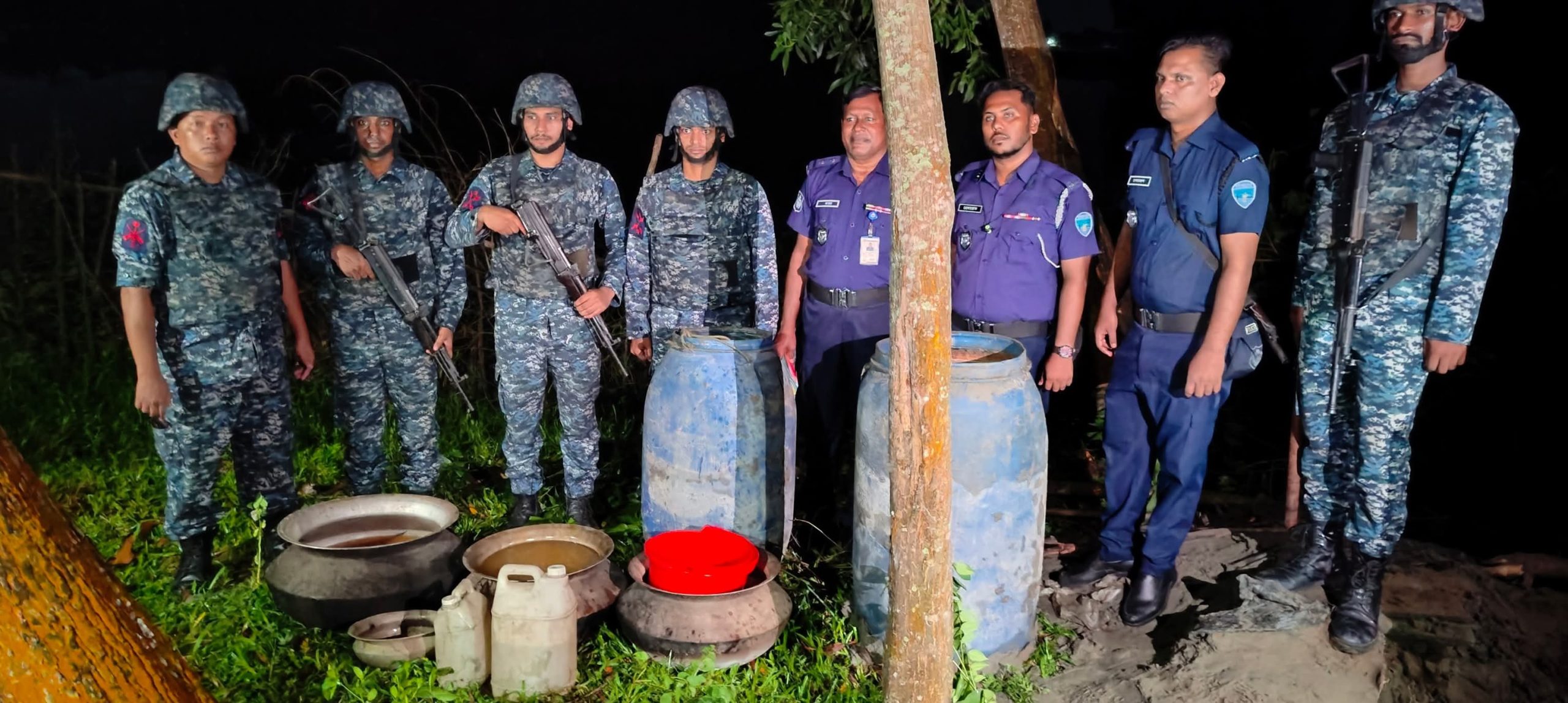 মহেশখালীতে নৌবাহিনী ও পুলিশের অভিযানে ৭০০ লিটার চোলাই মদ ধ্বংস