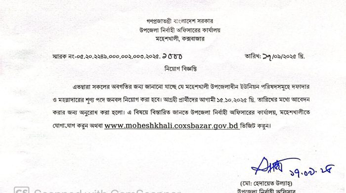 মহেশখালীতে দফাদার-মহল্লাদার নিয়োগ বিজ্ঞপ্তি